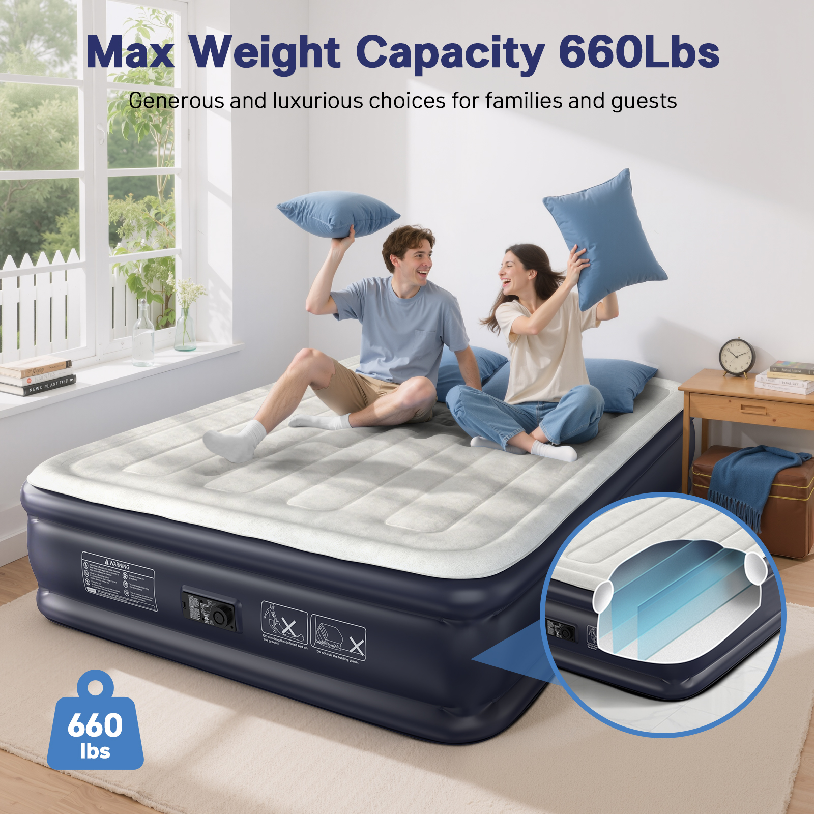 Divon Air Mattress Queen With Built In Pump,18″High Puncture-Proof Inflatable Bed For Travel,Home& Camping,660lbs,Blue