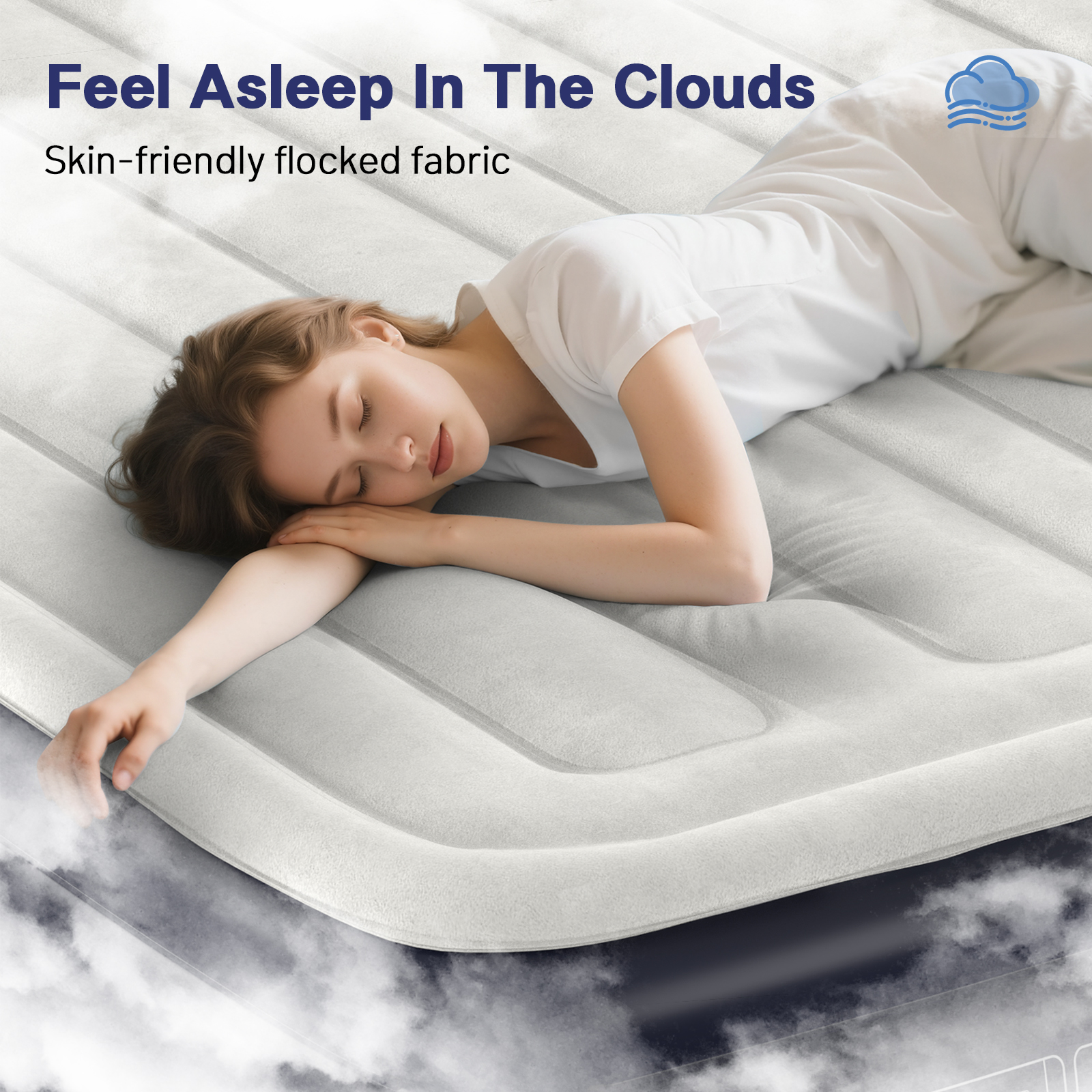 - ✔️ 3-Minute Setup: Built-in 120V pump inflates/deflates quickly; anti-slip bottom keeps mattress stable.