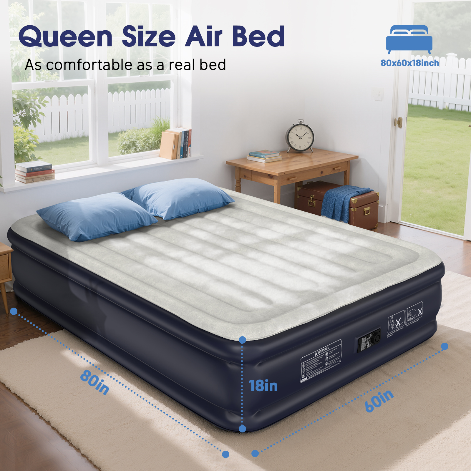 Divon Air Mattress Full,18 Raised Thicker Inflatable Mattress With Built-In Pump, Blow Up Mattress For Guest&Travel