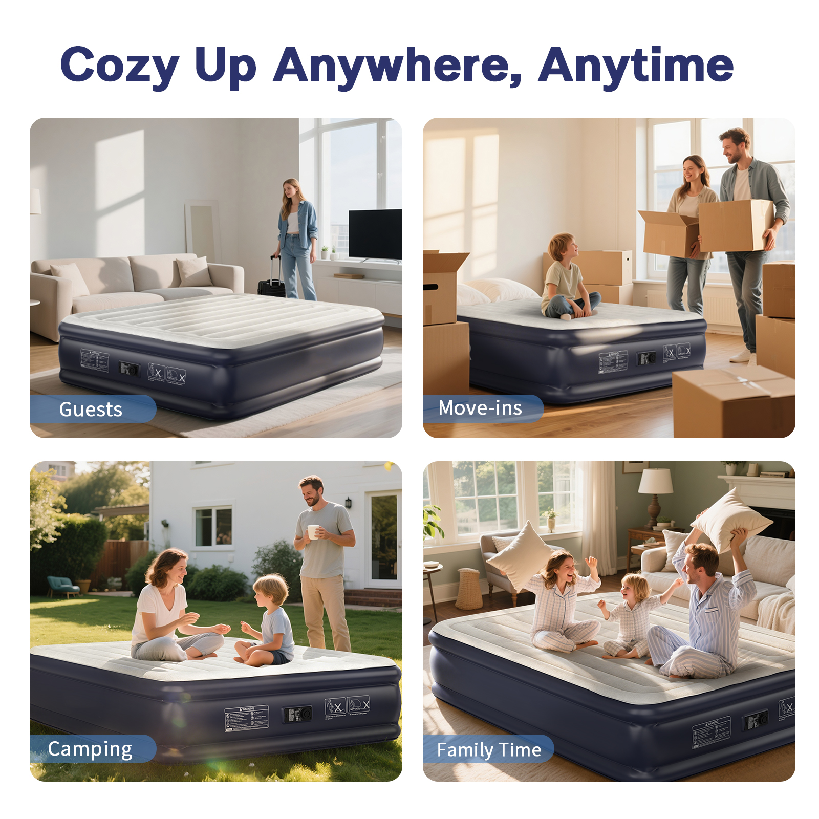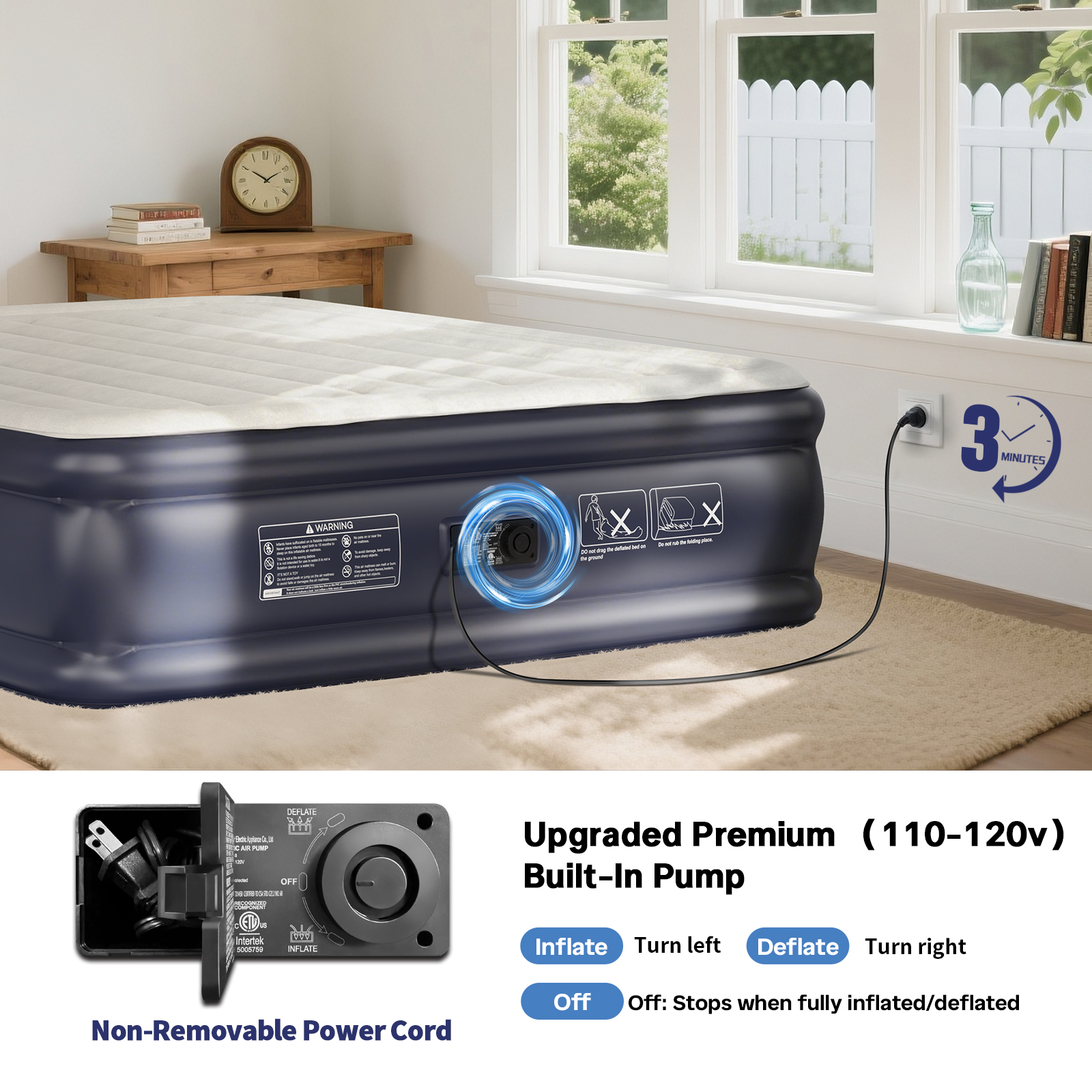 - ✔️ 2-Minute Setup: Built-in 120V pump inflates/deflates quickly; anti-slip bottom keeps mattress stable.