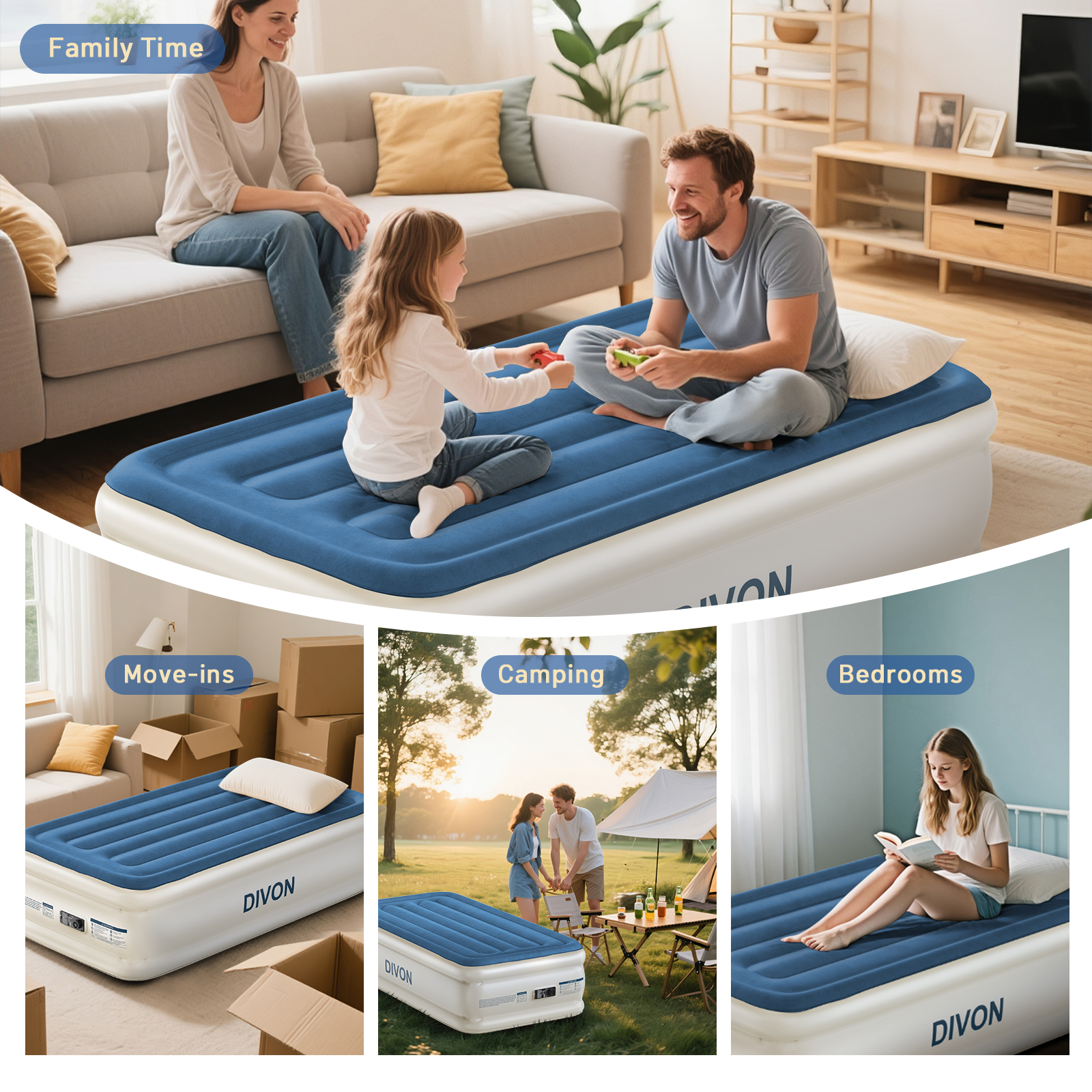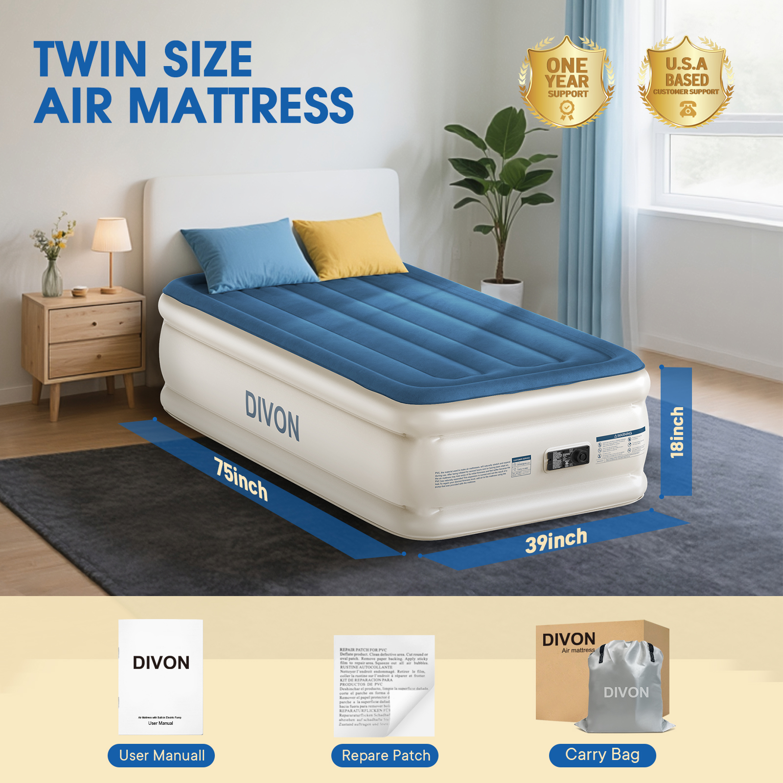 - U.S. Based Customer Support - DIVON offers 24/7 U.S.-based customer support. If you have any concerns about your inflatable air mattress, please contact us directly.